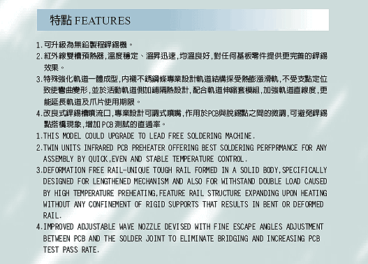 全自動免洗製程加長型 紅外線預熱雙 / 單波銲錫機